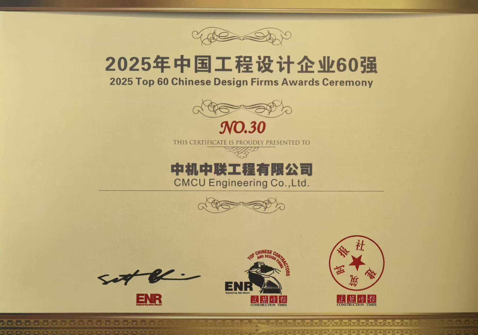 - 中機(jī)中聯(lián)上榜2025ENR/建筑時(shí)報(bào)中國工程設(shè)計(jì)企業(yè)60強(qiáng)! 2025-09-28